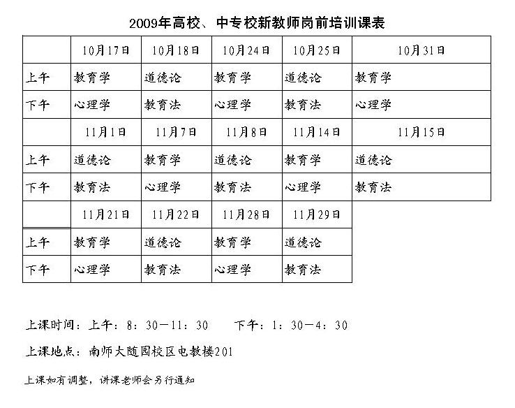 考虑到居住仙林校区青教公寓的新教师周末能够及时参加培训,已增开7:20自仙林青教公寓至南师大随园校区的交通车(周末运行)。
