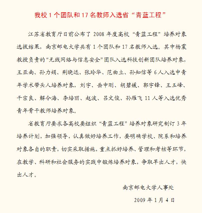 新闻链接:关于2008年度“青蓝工程”培养对象签订目标责任书的通知